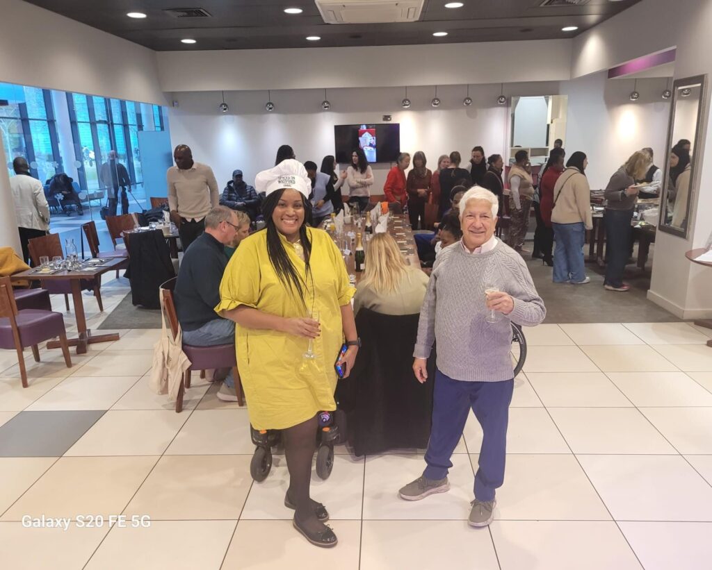 Spiced in Watford is a local community initiative founded by Eva Mbiru that uses cooking to support mental well-being in Watford, Hertfordshire. in partnership with West Herts College Culinary department. The program provides a welcoming space for people to connect, cook, and discuss mental well-being.